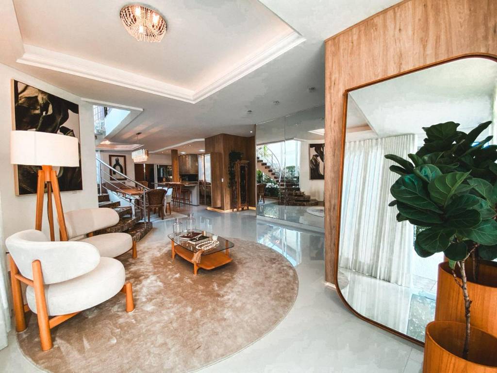 No andar térreo, conta com um amplo living dividido em quatro ambientes, lavabo, uma suíte, lavanderia com área de serviço e terraço, além de um maravilhoso escritório.
