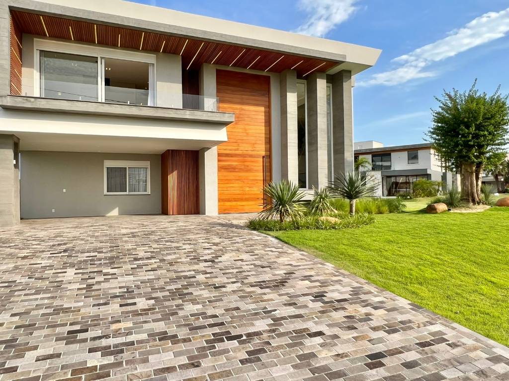 Amplo Sobrado Junto ao Lago do Condomínio Enseada! Casa composta por 05 Suítes, sendo uma Suíte Master com closet, hidromassagem e sacada com vista para o Lago, amplo living, sala de estar/ jantar, mesa de sinuca com cristaleira, estar de apoio com espaço gourmet com churrasqueira, piscina em concreto, cozinha estilo americana, área de serviço separada, lavabo social. Todas as peças Mobiliadas, Decoradas e Equipadas!! Sobrado com 589m² de área construída, 100% automatizada, persianas automatizadas, sistema de som integrado, energia solar, jardim com irrigação e iluminação!