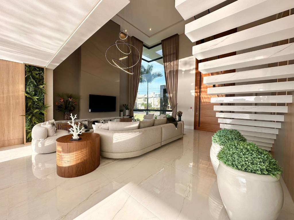 Sobrado finamente mobiliado e decorado, com pé direto alto e living bem distribuídos em quatro ambientes de estar e jantar, cozinha gourmet com ilha, churrasqueira giratória, ambiente totalmente integrado com a área da piscina que possui aquecimento com vista magnifica para o lago, no andar superior, estar intimo, cinco suítes independentes, sendo uma delas master, sala de cinema com sistema de áudio diferenciado, isso tudo distribuídos em 426m² de área construída.