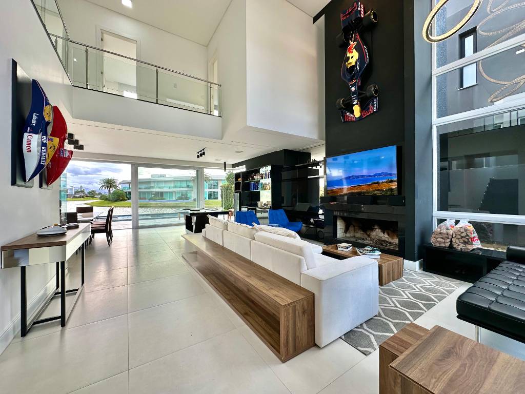 Apresento uma residência de alto padrão com 300?m² em condomínio à beira de lago, localizada em Xangri?Lá. Este sobrado oferece cinco suítes, um lavabo e um pé?direito duplo que confere amplitude aos ambientes.