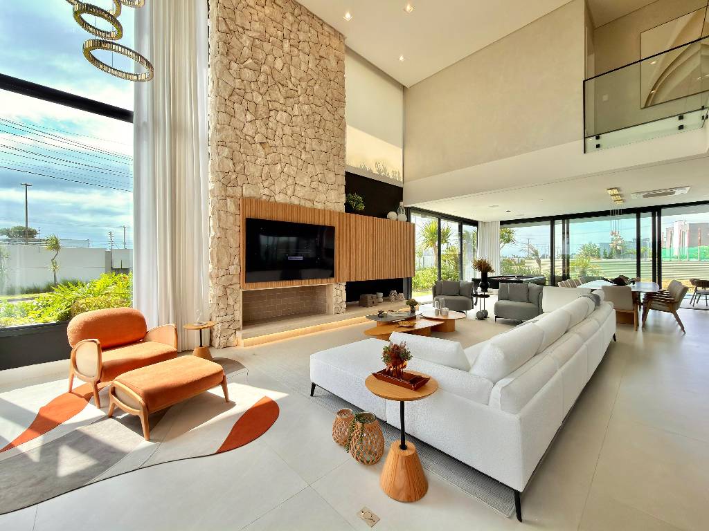 Mansão exclusiva à venda no Condomínio Sense, localizada em lote de esquina com 537 m² e 475 m² de área construída, projetada para quem busca alto padrão, conforto e sofisticação. O imóvel conta com cinco suítes, sendo uma térrea, além de uma suíte master com um closet espetacular. A casa possui área de serviço com dependência e é totalmente automatizada por Alexa, oferecendo praticidade e tecnologia em todos os ambientes. A área de lazer é um grande destaque, com piscina aquecida com hidro, posicionada de frente para o lago, proporcionando uma vista privilegiada. A decoração se diferencia pelo uso de pedras brancas raras, escada totalmente revestida em Travertino Romano e bancada do lavabo no mesmo material. O imóvel ainda dispõe de mesa de sinuca e excelente iluminação natural em todos os espaços. Entre em contato para mais informações ou para agendar uma visita.