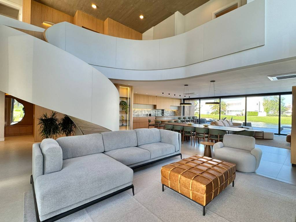 São 6 suítes amplas, projetadas para oferecer total privacidade e bem-estar, além de 10 banheiros distribuídos de forma funcional e refinada. O living integrado convida à convivência, com ambientes de sala de estar, jantar e TV perfeitamente conectados à cozinha gourmet, sala de apoio e à varanda com vista panorâmica para o lago e piscina privativa com gourmet externo— um convite irresistível para momentos de lazer e celebração.